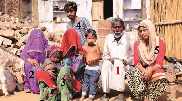 Heaps of stones lie outside the room where 62-year-old Madan Lal Deegwal lives with his family of seven in Peetham Puri village of Rajasthan’s Sikar district. The stones are the only remnants of two rooms of the house which collapsed during last year’s monsoon. Classified as BPL, the family, which belongs to the SC Regar caste, is a beneficiary of several government schemes but barely manages to scrape through every month