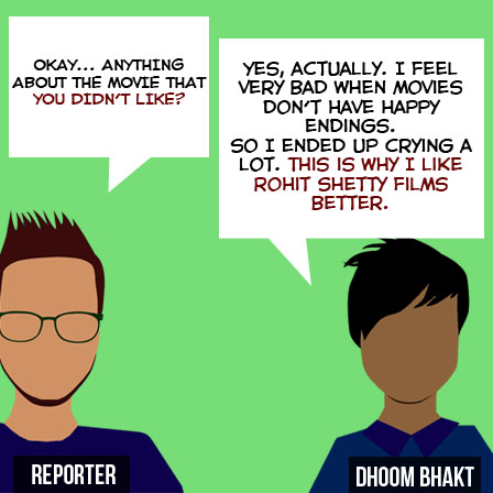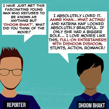 Muttering under his breath that the Dhoom Bhakt should replace the first part of his name with ‘Kam’,our reviewer went in search of his last guest: