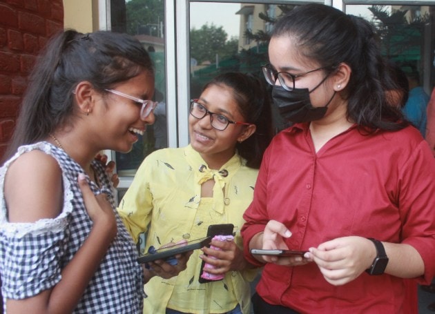 This year, CISCE has reported an overall pass percentage of 99.38 per cent in ISC exams 2022. Girls have outshined boys, with a pass percentage of 99.52 per cent. In pic: Students at Lt Atul Katarya Memorial School in Gurugram, on Sunday, July 17, 2022.(PTI photo)