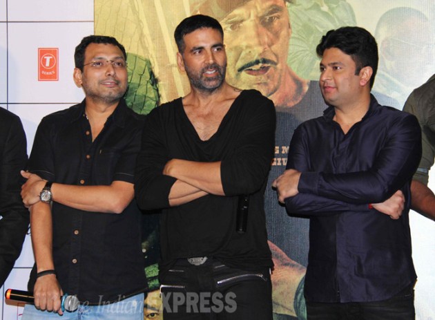 Filmmaker Neeraj Pandey, who has earlier directed films like ‘Special 26’ and ‘A Wednesday’, joins Akshay and Bhushan on stage. (Source: Varinder Chawla)