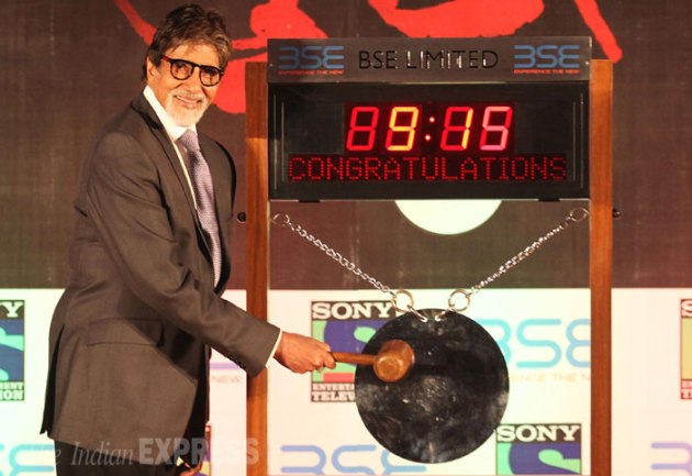 "By ringing the bell, 'Yudh' has listed 'Shanti Constructions' at the Bombay Stock Exchange," Amitabh Bachchan re-tweeted a post of Sony channel, on which the new show is set to air from next month. (Source: Express photo by Pradeep Kochrekar)