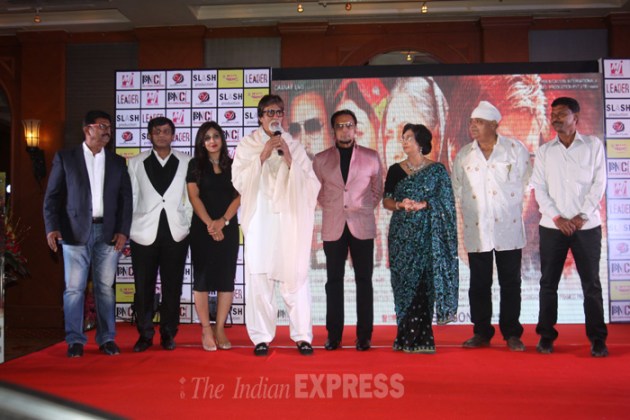Bollywood megastar Amitabh Bachchan on Sunday (May 4) unveiled the first look of his former make-up man Deepak Sawant’s upcoming film 'Leader' in Mumbai. (IE Photo: Dilip Kagda)