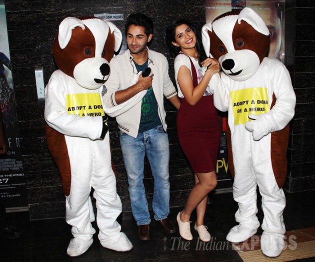 Bollywood newbies Armaan Jain and Deeksha Seth, who are all set to make their debut with 'Lekar Hum Deewana Dil', were out promoting the film with their hearts going out to 'dog adoption' campaign on Sunday (June 29) in Mumbai. (Source: Varinder Chawla)