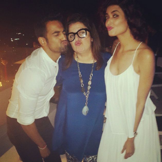 Seen here, lovebirds Upen Patel and Karishma Tanna pout for the cameras along with Farah. (Source: Twitter)