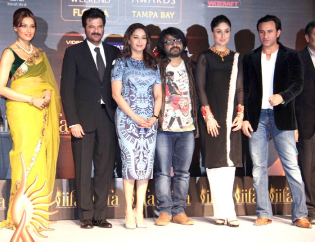 Actresses Madhuri Dixit, Bipasha Basu, Kareena Kapoor along with actors Saif Ali Khan and Anil Kapoor attended the 15th International Indian Film Academy (IIFA) awards press conference in Mumbai.