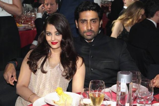 Indian beauty queen and Bollywood actress Aishwarya Rai Bachchan reunited with her husband Abhishek Bachchan at Cannes 2014 where the couple hosted the amfAR Gala on Thursday (May 22). (Source: AP)