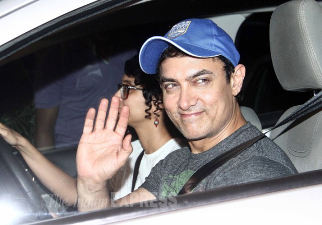 B-Town couple Aamir Khan and Kiran Rao were pictured leaving Karan’s residence together. (Source: Varinder Chawla)