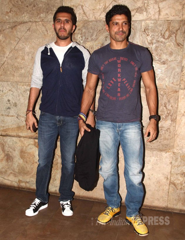 Farhan Akhtar also made it a point to watch his ‘Bhaag Milkha Bhaag’ co-star, Sonam onscreen as he arrived with business partner and friend Ritesh Sidhwani. (Source: Varinder Chawla)