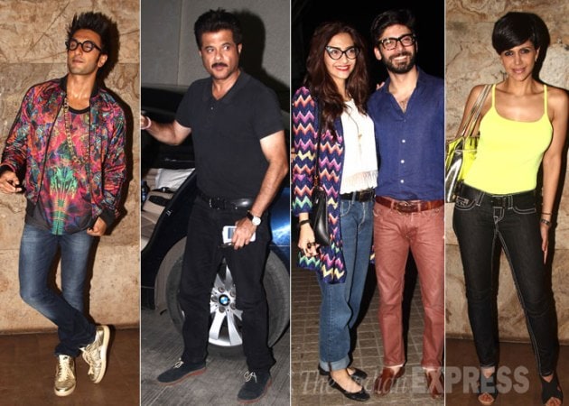 Actor Anil Kapoor hosted a special screening of his daughter Sonam’s newly released ‘Khoobsurat’. Also seen were Ranveer Singh, Mandira Bedi and Sonam’s sister Rhea.
