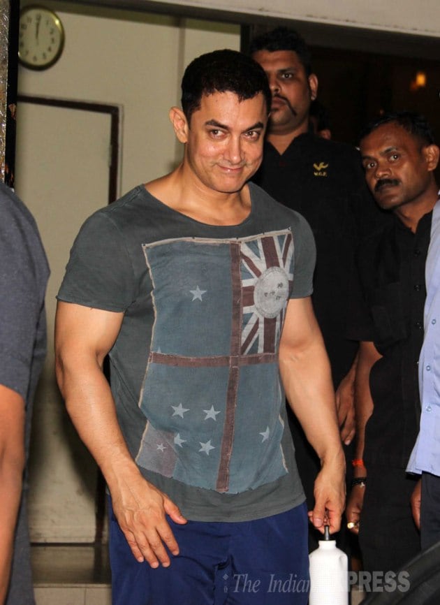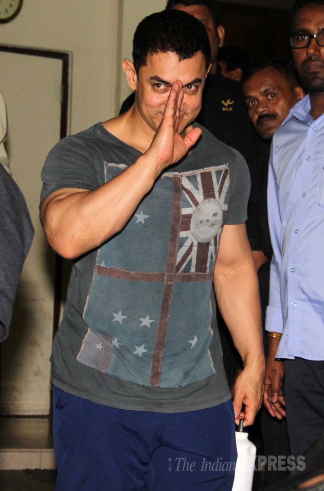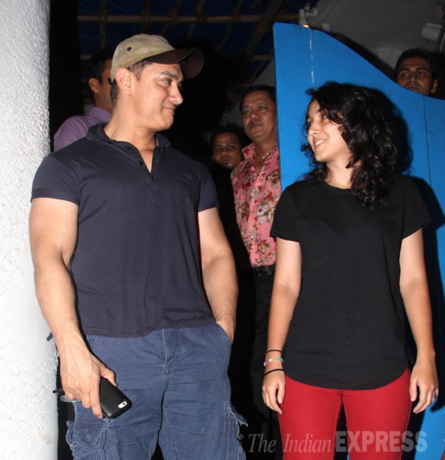 Aamir Khan showed off his beefy bod in a dark coloured tee shirt with blue cargo pants. Ira on the other hand was dressed in a basic black tee with bright red skinnys. (Source: Varinder Chawla)