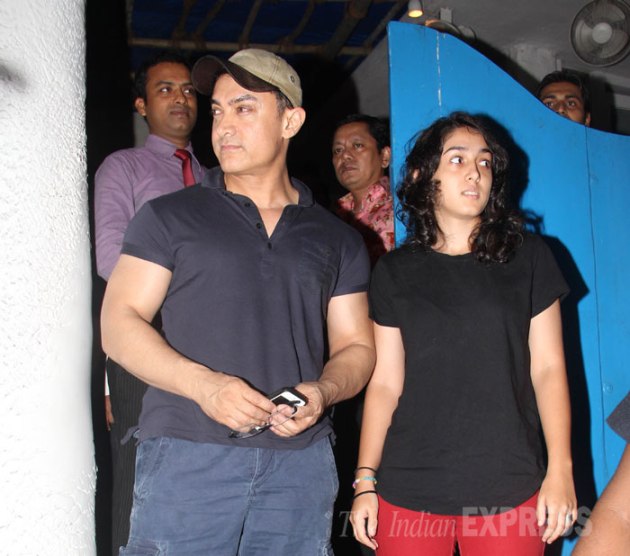 Bollywood superstar Aamir Khan took some time off from his busy schedule for a dinner date with his teenage daughter Ira. The two were spotted stepping out from a popular restaurant in suburban Mumbai on Tuesday night (August 5). (Source: Varinder Chawla)