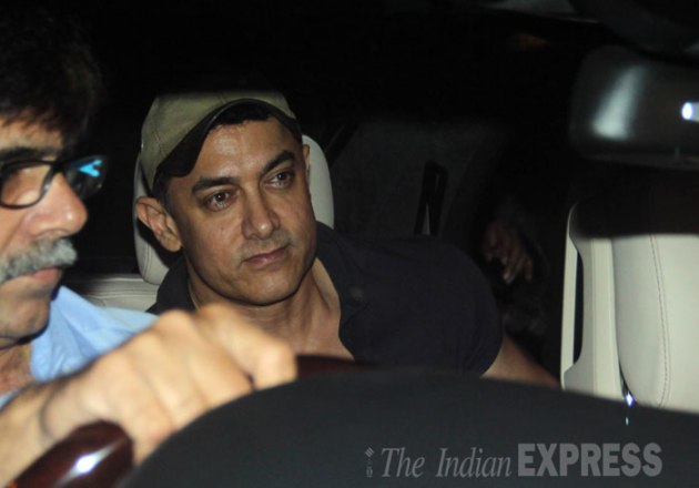 Earlier in the evening, Aamir Khan was spotted meeting with his 'PK' director Rajkumar Hirani. Probably finalising promotion strategy for PK. (Source: Varinder Chawla)
