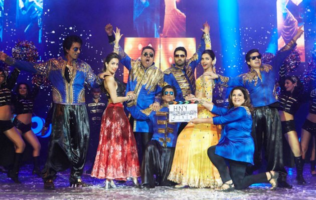 Vivaan Shah, Sonu Sood, Madhuri Dixit, Shah Rukh Khan, Deepika Padukone, Malaika Arora Khan, Abhishek Bachchan and Boman Irani seem to be having a ball during one of the songs.