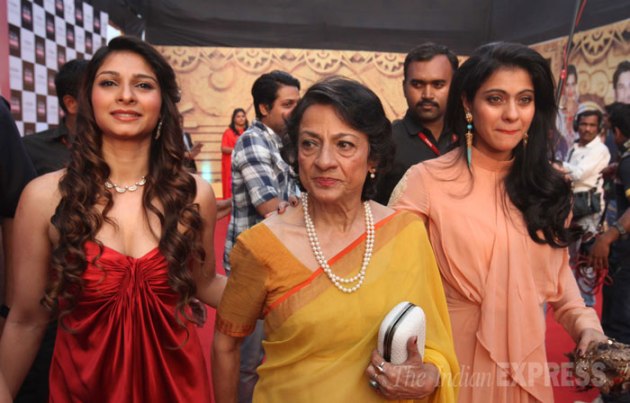 Veteran actress Tanuja and her daughters Kajol and Tanishaa were few of the early guests at the Red Carpet of the 20th Annual Life OK Screen Awards that is all set to start in a few hours. (IE Photo: Vasant Prabhu)