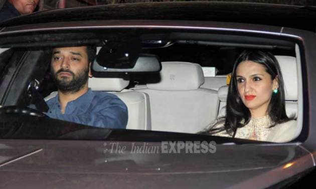 Socialite Anu Dewan gets our attention with her bright lipcolour as she arrives with husband Sunny. (Photo: Varinder Chawla)