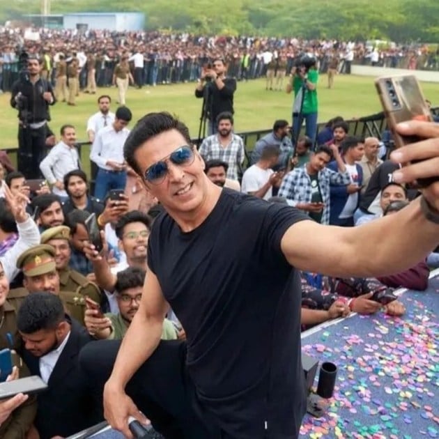 While Akshay’s security pushed the person away, the man fell during the melee and the actor had to step in. Akshay went and hugged the man and had a word with him.