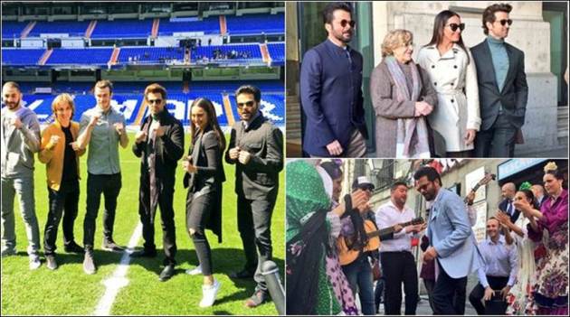 The Twitter handles of the three Bollywood stars, speaks about the fun and visits they are having in the city. Anil, Hrithik and Sonakshi met the football players Karim Benzema, Luka Modrić and Gareth Bale. The actors pose with the players as they visit the Santiago Bernabéu Stadium. (Source: Photo by Twitter/Instagram)