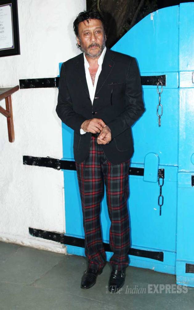 Proud father Jackie Shroff was suave in checked trousers, white shirt and a black blazer. (Source: Varinder Chawla)