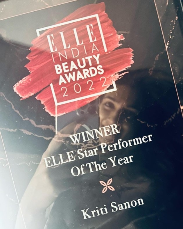 Kriti Sanon shared a click of her trophy from an award ceremony last night night and wrote, "Thank you @elleindia for the love and honor 💖 #Mimi." (Photo: Kriti Sanon/Instagram)