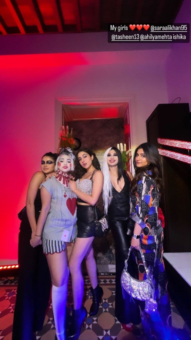 The Gen Z stars of Bollywood, Ibrahim Ali Khan, Sara Ali Khan, Janhvi Kapoor, Ananya Panday, and Shanaya Kapoor, among others, became a part of a Halloween party hosted by Orhan Awatramani in Mumbai last night. Scroll to see some inside photos and know who came as what at the bash. (Photo: Tanya Ghavri/Instagram)