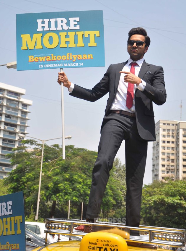 The actor was sharp in a suit as he stood atop a taxi with a signboard, saying 'Hire Mohit’. (Photo: Varinder Chawla)
