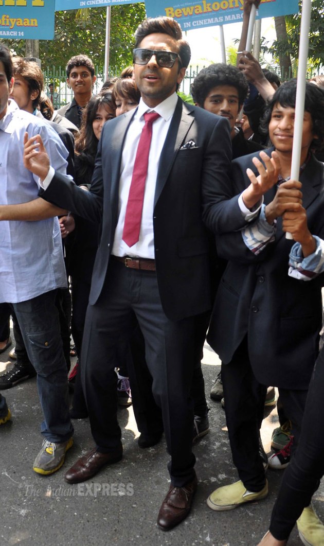In another part of South Mumbai, Ayushmann Khurrana mingled with the crowd as he promoted ‘Bewakoofiyaan’ sans his onscreen ladylove Sonam Kapoor. (Photo: Varinder Chawla)