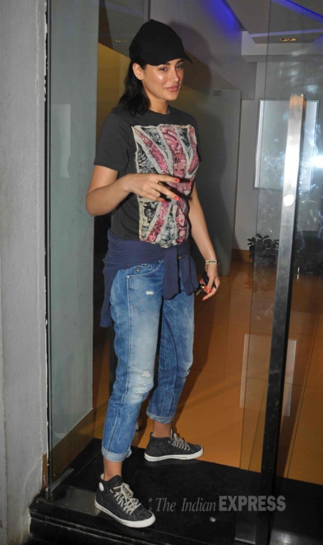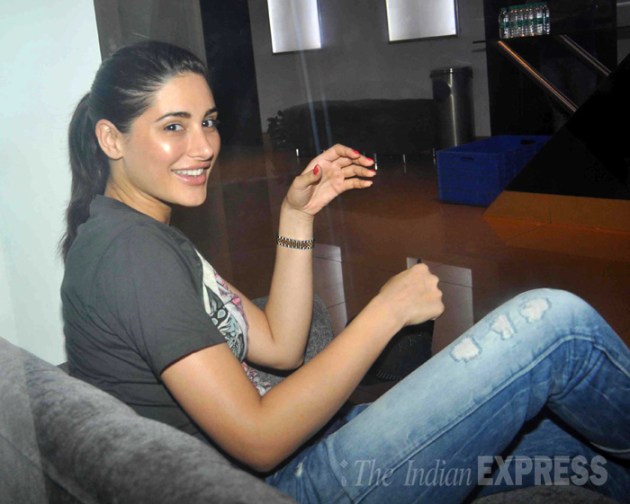 Actress Nargis Fakhri sported a tomboyish look in a tee shirt, three-quarter denim pants and sneakers. (Source: Varinder Chawla)