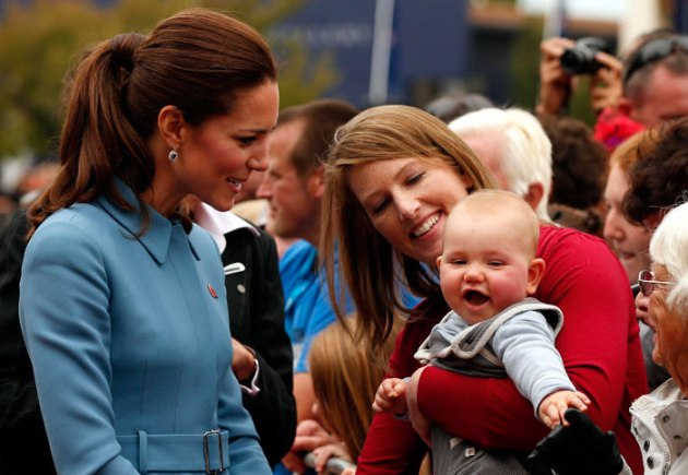 Kate stops to say hello to a chubby-cheeked-baby who was being carried by his mother. (Reuters)