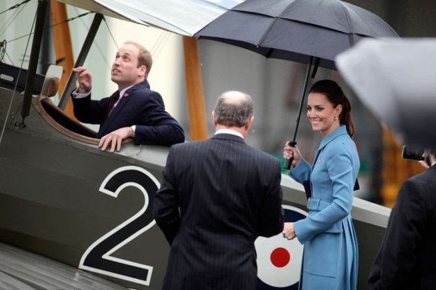 Prince William climbed into the cockpit of vintage biplane Sopwith Pup, while Kate enjoys some conversation. (AP)