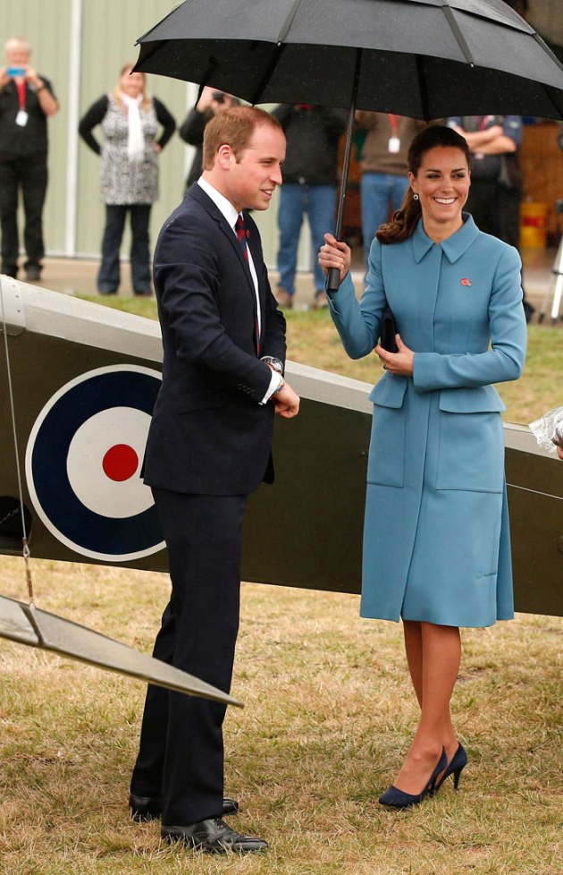 Labeled as the most stylish Duchess ever, Kate Middleton was effortlessly chic in a blue coat by Alexander McQueen with navy-blue pump heels and a matching clutch. The Duke was sharp in a dark suit and tie. (Reuters)