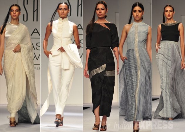 In simple tones of white black and grey, Sailex showcased feminine creations with a hint of sensuality. (Photo: Varinder Chawla)
