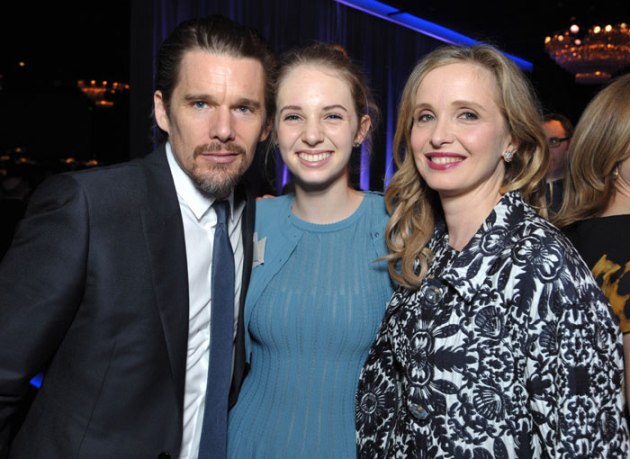 Candid shot – Ethan Hawke, Maya Thurman-Hawke and Julie Delpy at the Luncheon. (AP)