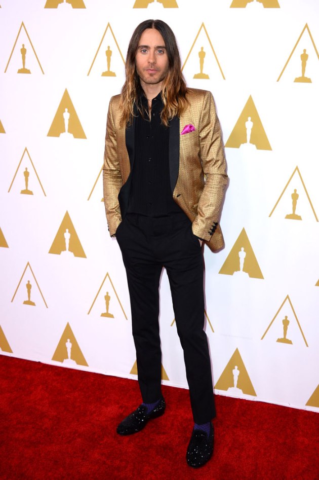 Jared Leto was smart in the black formals and jazzy golden jacket for the Luncheon. (AP)