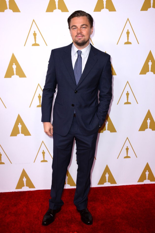 'The Wolf of Wall Street' actor Leonardo DiCaprio was suave in the navy blue suit. (AP)