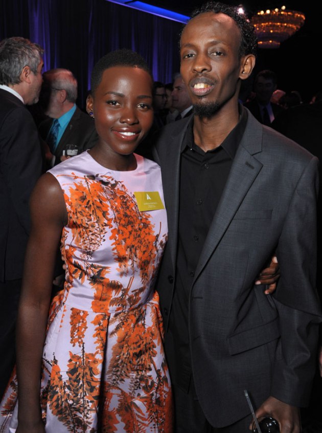 Lupita Nyong'o poses with star Barkhad Abdi at the 86th Oscars Nominees Luncheon. (AP)