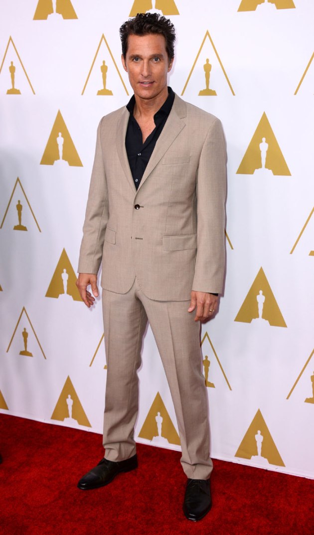 Matthew McConaughey and Camila Alves McConaughey pose for the photogs at the Academy Awards Luncheon. (AP)