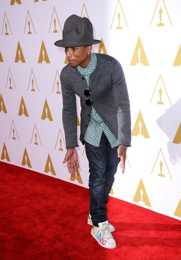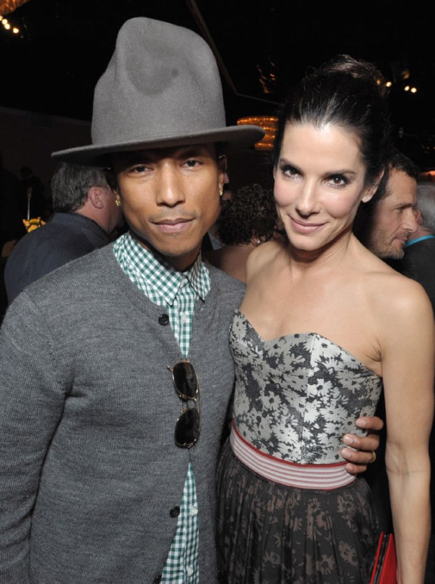Pharrell Williams and Sandra Bullock at the 86th Oscars Nominees Luncheon. (AP)