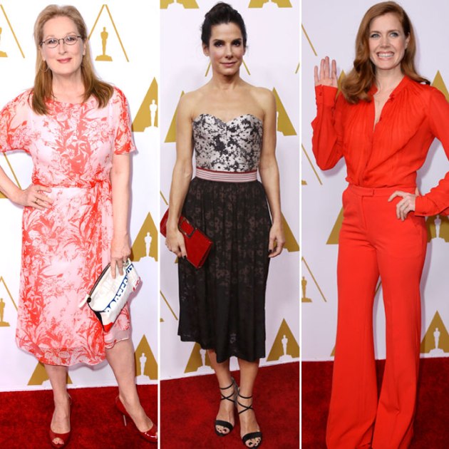 Actress Amy Adams was bright and smart in her 70s inspired outfit for the nominees luncheon. The 'American Hustle' actress did away with the jewellery which worked in her favour. (AP)