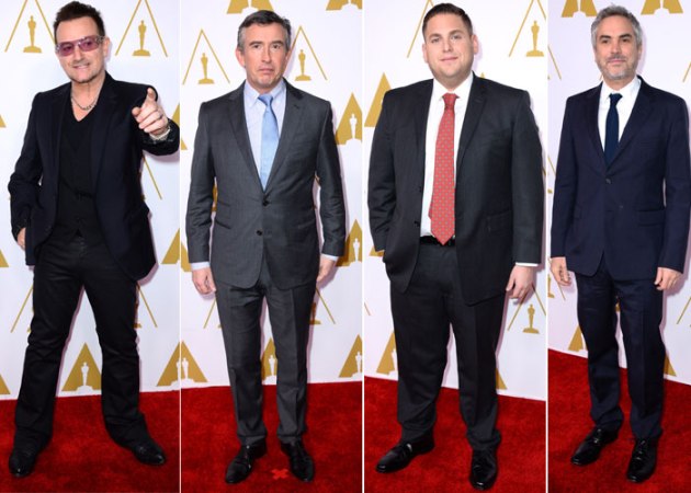 Steve Coogan, Jonah Hill, Alfonso Cuaron and Bono suited up for the Luncheon. (AP)