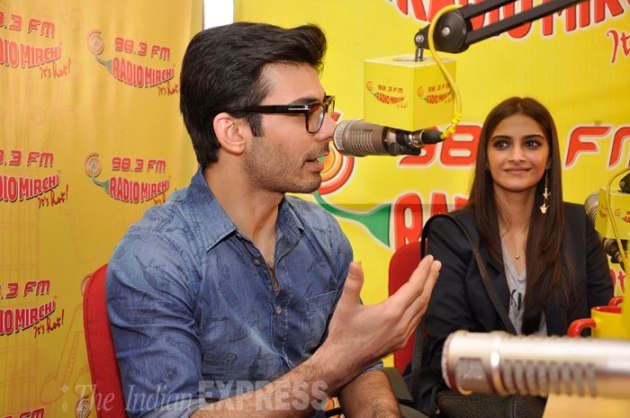 Lead actors of forthcoming rom-com 'Khoobsurat', Sonam Kapoor and Fawad Afzal Khan turned RJs for a day as they promoted their film at a radio station in Mumbai. (Source: Varinder Chawla)