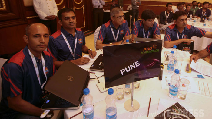 "3 hour flight to Mumbai, check. Quick drive to auction. Quick change, check. Time for PRO KABADDI LEAGUE!!," he tweeted before the event. (Source: Express photo by Kevin DSouza)