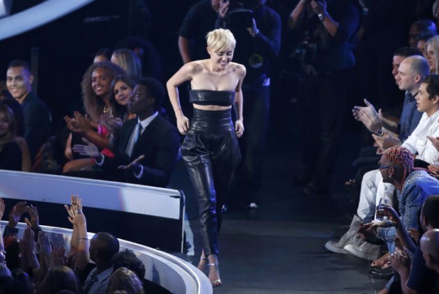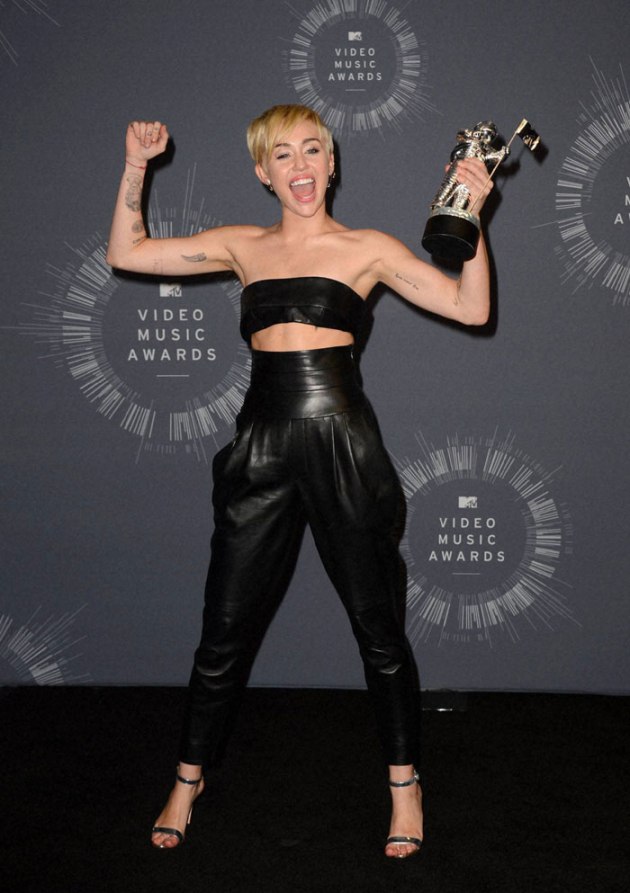 Miley Cyrus poses with the award for Video of the Year in the press room at the MTV Video Music Awards at The Forum on Sunday. (Source: AP)
