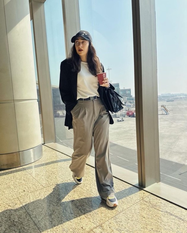 Karisma Kapoor shared her look and wrote, "Mondaying 🏃🏻♀️#ootd #dadstyle." (Photo: Karisma Kapoor/Instagram)