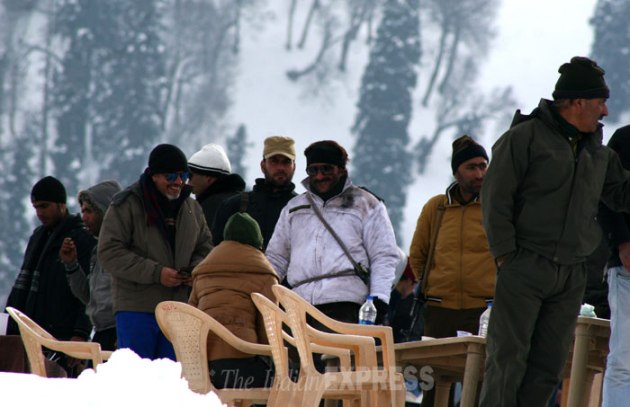 While rest of the crew led by film's director Kabir Khan arrived in Kashmir valley last week, Saif Ali Khan joined them in Gulmarg on Thursday. (IE Photo: Shuaib Masoodi)