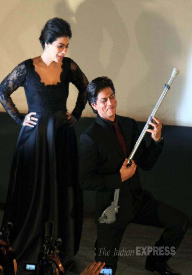 Shah Rukh does his signature pose, which Kajol surely finds hard to resist. (Source: Express Photo by Vasant Prabhu)