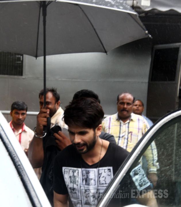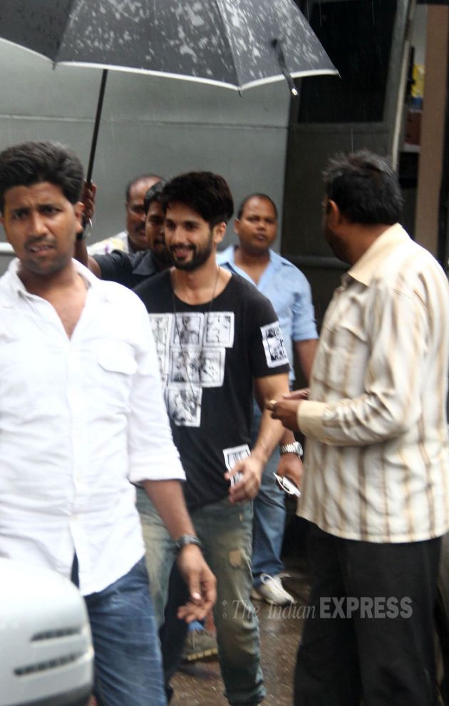 Bollywood actors Shahid Kapoor and Shraddha Kapoor were spotted on their heels of yet another promotional event for their upcoming film ‘Haider’. Despite the rain, Shahid was all smiles in a T shirt and denims. (Source: Varinder Chawla)