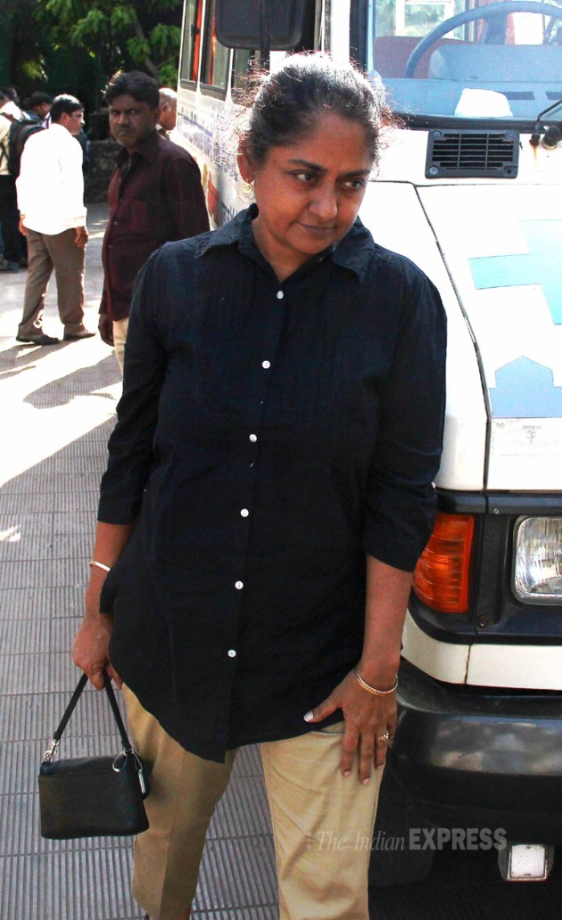 Seen here Tabassum arrives with a family member at Nanda's funeral. (Photo: Varinder Chawla)