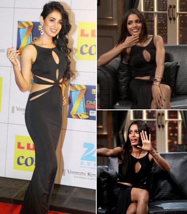 Singer-actress Sonal Chauhan went sexy in a cutout black Shivan & Narresh gown at an award show that was previously seen on Bollywood-turned-Hollywood actress Frieda Pinto on controversial chat show ‘Koffee With Karan’.