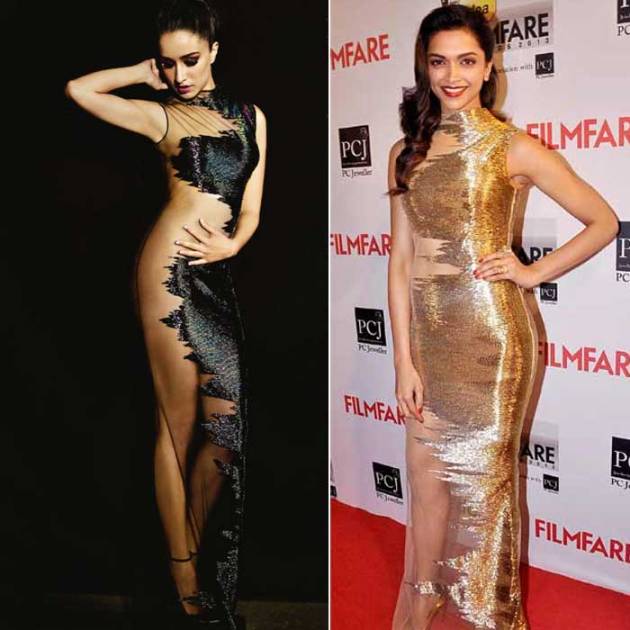 'Ek Villain' actress Shraddha Kapoor copied Deepika Padukone's look – the risqué Gaurav Gupta gown that Deepika had worn to an award show earlier this year. While the ‘Ram-Leela’ girl went for gold, Shraddha sizzled in a black and sheer look as she posed for a recent photo shoot.