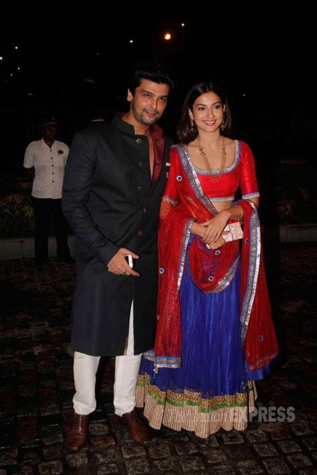 Gauahar Khan looked beautiful in a red and blue lehenga. Accompanying her was beau Kushal Tandon, who looked smashing in a black sherwani. (Source: Varinder Chawla)